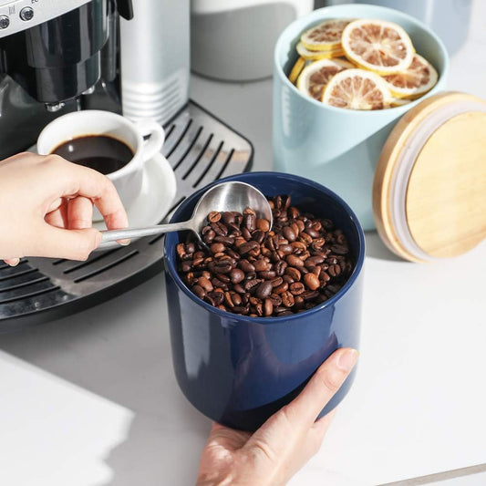 Kitchen Canisters Ceramic Food Storage Jar, Stackable Containers with Airtight Seal Wooden Lid for Serving Coffee Bean, Flour, Tea, Cookies and More - 58 Fl Oz(Navy)