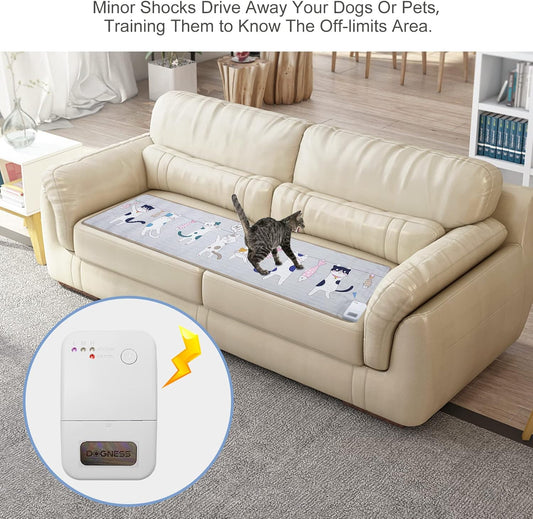 Pet Scat Training Mat, Electric Repellent Mat for Cats and Dogs, Furniture Protector Shock Pad for Couch, Counter, Bed-Cat Pattern