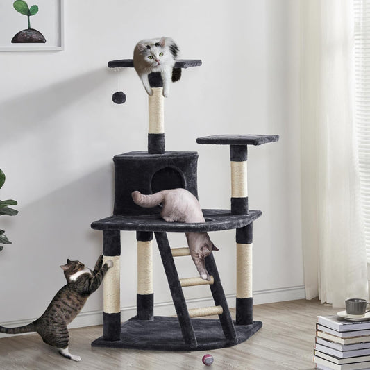 47.5'' H Cat Tree Cat Tower, Cat Scratching Post with Warm Condo Cozy Platform Funny Dangling Ball as Indoor Cats Activity Center for Play & Rest