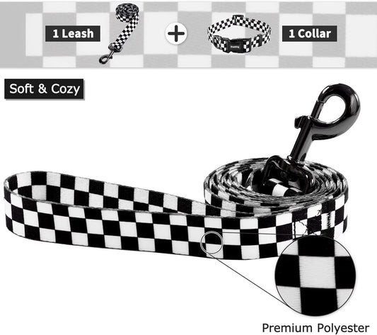 Dog Collar and Leash Set for Daily Outdoor Walking Running Training, Chess Board Design for Large Boys Girls Dogs Cats Pets, L-Up to 80LBS